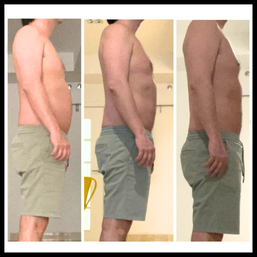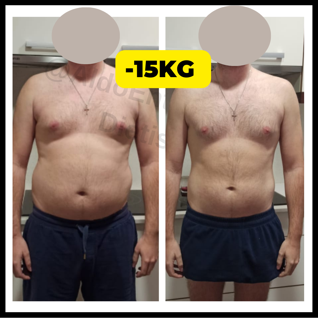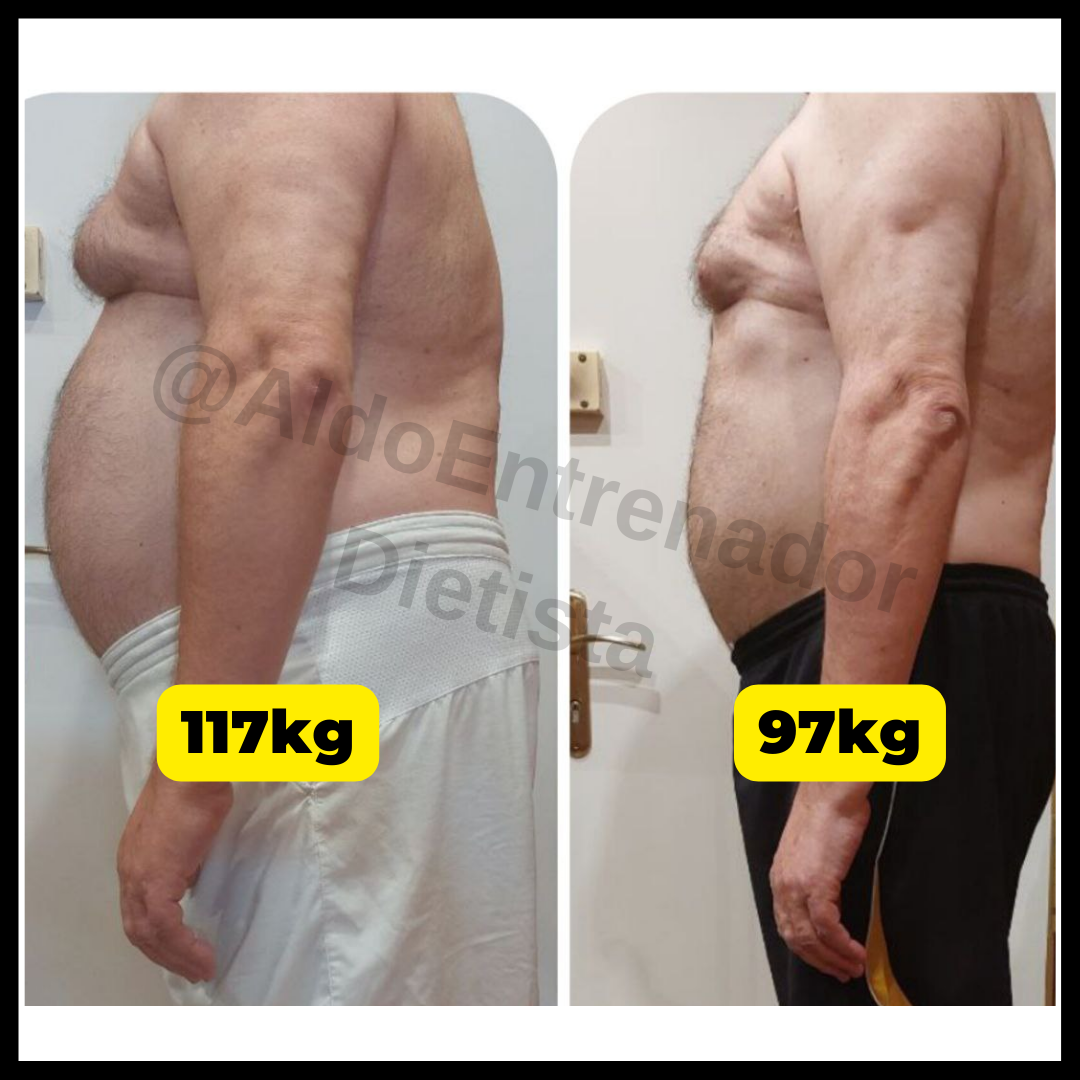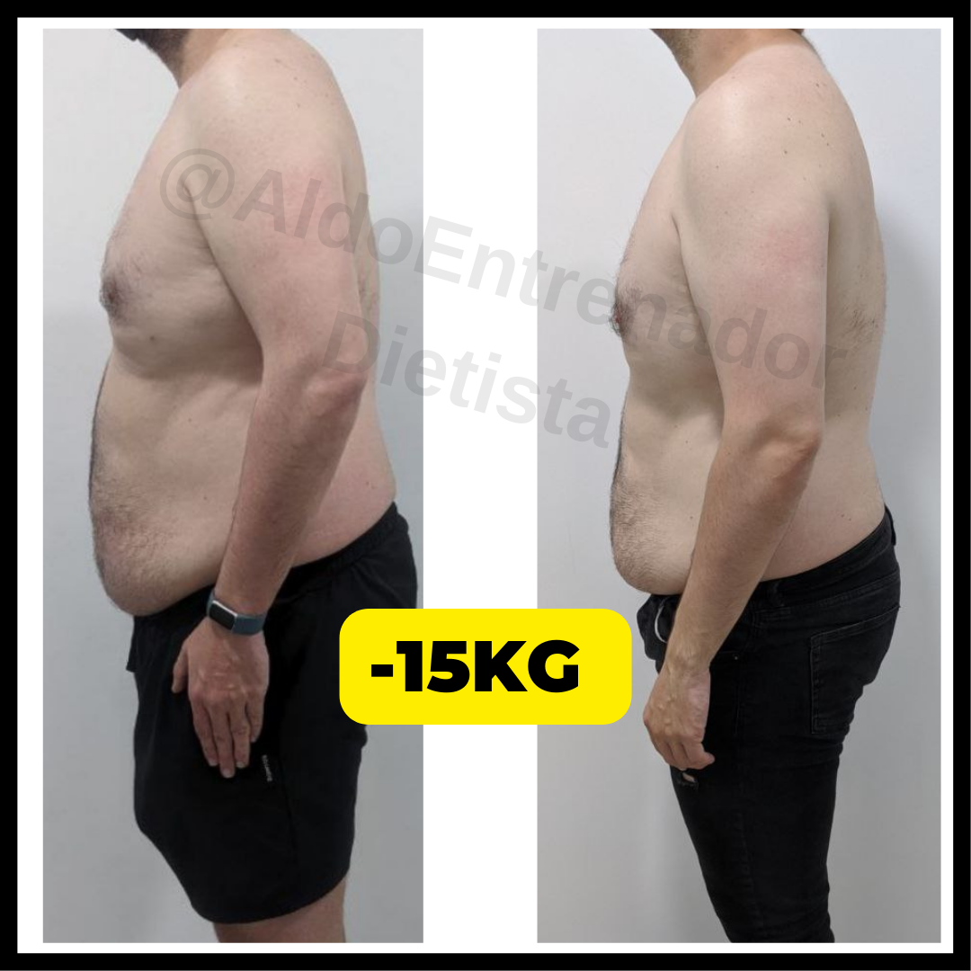 Perdió unos 12kg de grasa sobre todo de la zona abdominal sin pasar hambre, sin hacer una dieta estricta y sin renunciar a su vida social. Durante el proceso, se cambió de ciudad y de trabajo.