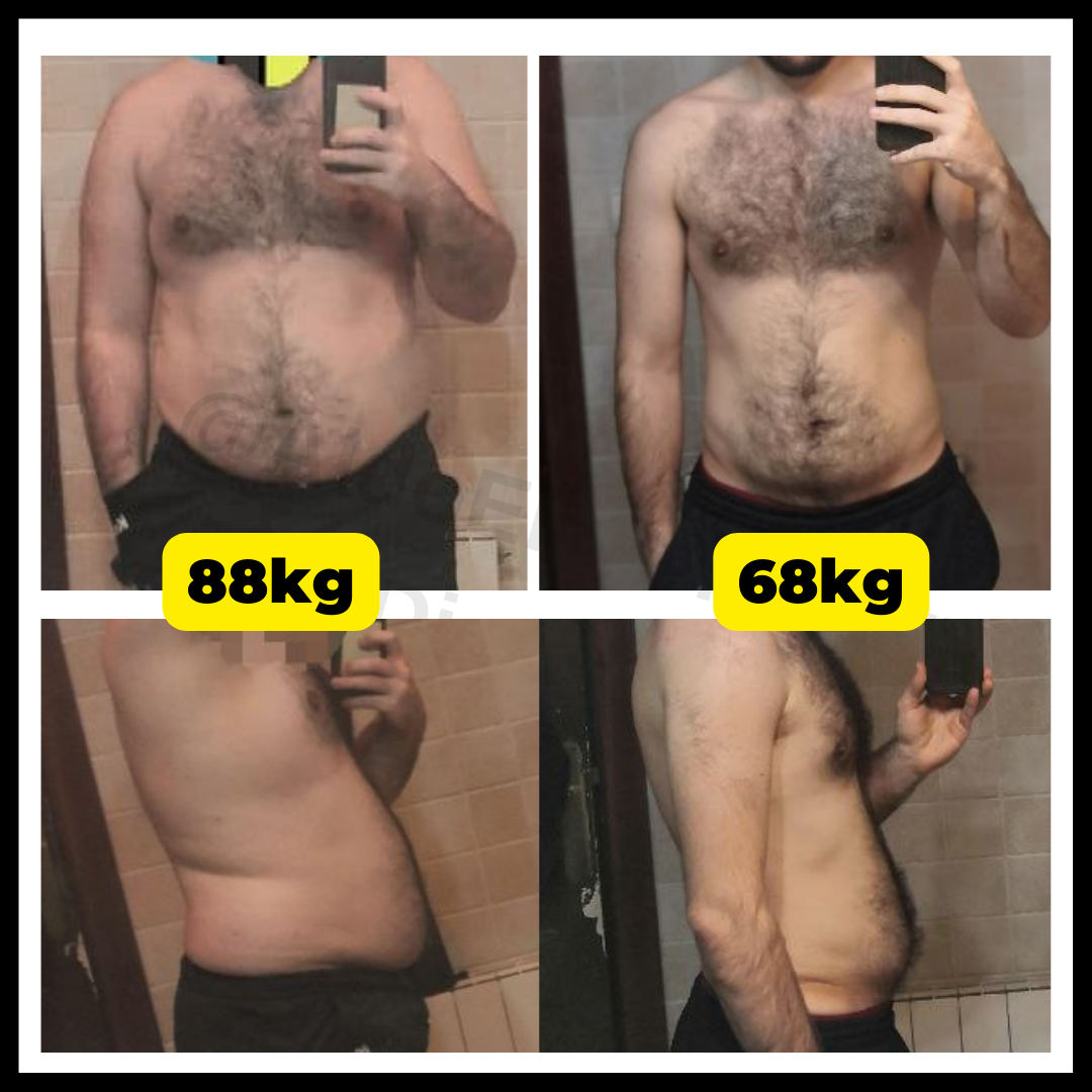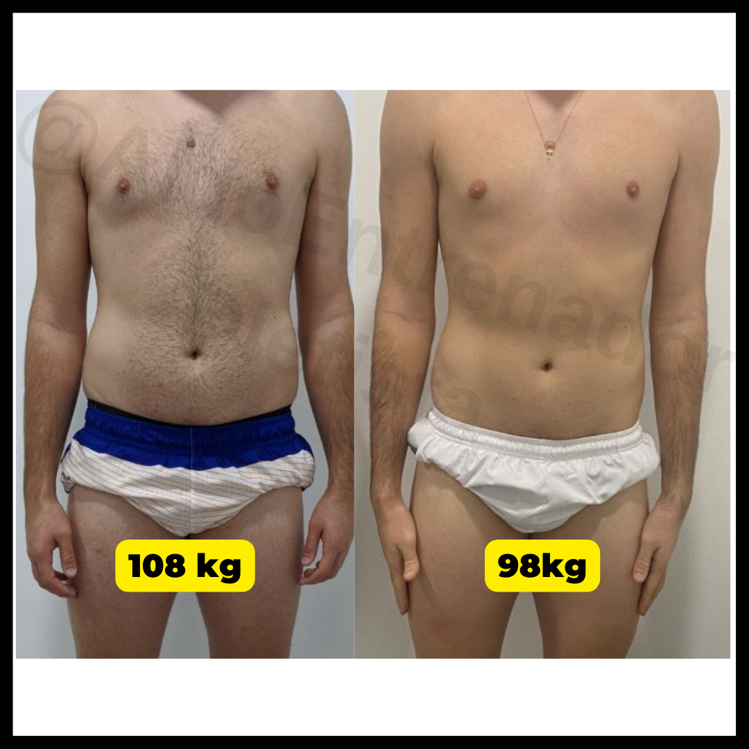 Perdió mucha grasa abdominal, consiguió reducir mucho el picoteo, sentirse con mucha más energía, rendir mejor en sus entrenamientos y sentirse mucho mejor consigo mismo.